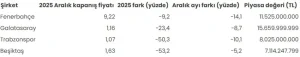 Süper Lig’de zirvede bulunan Galatasaray ise borsada aynı performansı gösteremedi.