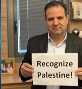 Haaretz gazetesi, sol kanat milletvekillerinin “Filistin’i tanıyın” pankartı açtığını yazdı.