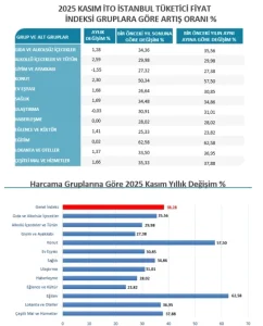 İstanbul Ticaret Odası (İTO) tarafından yayımlanan 2025 Kasım ayı verilerine göre, İstanbul Tüketici Fiyat Endeksi (İTO 2023=100) bir önceki aya kıyasla yüzde 1,19 oranında yükseldi. Geçen yılın aynı ayına göre fiyatlardaki artış oranı ise yüzde 38,28 oldu.