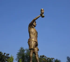 Messi’nin Batı Bengal eyaletinin başkenti Kalküta’da (Kolkata) ziyaretçilere açılan Dünya Kupası’nı kaldırdığı 21 metre yüksekliğindeki heykeli ilgi görüyor.