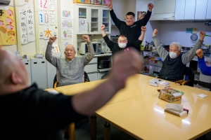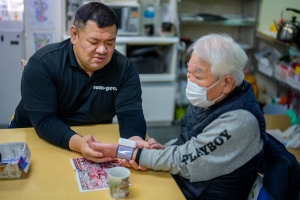 Tokyo’daki ulusal sumo arenasına yakın bir noktada bulunan Day Service Hanasaki adlı bakım merkezinde ise emekli sumo güreşçileri hastalarla ilgileniyor.