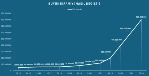 2024’e girerken büyük ikramiye yine yüzde 100 artışla 400 milyon olurken, Milli Piyango’nun 2025 yılına girerken de büyük ikramiyesi 600 milyon lira olarak açıklandı. 2026 için de yıllık yüzde 33 artışla ikramiye 800 milyon TL oldu.
