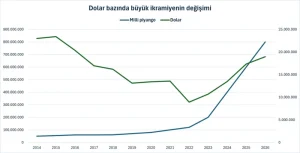 2014 yılında, yılın ilk işlem gününde, TCMB gösterge kurları üzerinden dolar/TL satış verisiyle hesaplanan dolar bazlı yılbaşı ikramiyesi 22 milyon 981 bin 110 dolar ediyordu. Günümüzde dolar enflasyonu üzerinden 31 milyon doların üzerinde bir miktara denk gelen ikramiye 2025’e girerken 600 milyon TL ile 17 milyon 341 bin 40 dolara geriledi.
