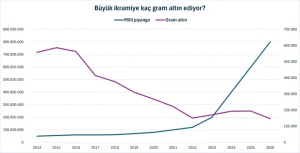 Ancak 2025’te altında yaşanan güçlü yükselişle tarihinin en düşük altın karşılığına gerileyen büyük ikramiye ile 147 bin 219 gram altın alınabiliyor. Altın sayısında 2014’ten 2026’ya erime yüzde 74 oluyor.