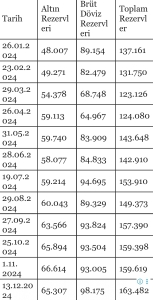 MB rezervleri, Ocak 2024’ten bu yana şöyle (milyon dolar):