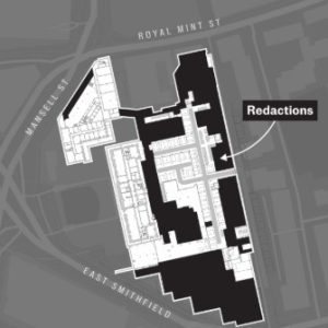 Belgeler, yeraltındaki üçgen biçimli odanın dış duvarının Mansell Caddesi’ne bakan bölümünün yıkılıp yeniden inşa edilmesini öngörüyor. Bu, Çinli müteahhitlerin kabloların yalnızca bir metre uzağında çalışması anlamına geliyor.