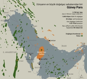 İran ile Katar arasında paylaşılan Basra Körfezi’ndeki Güney Pars doğalgaz sahası, dünyanın en büyük doğalgaz sahalarından biri kabul ediliyor. Saha, her iki ülkenin enerji ekonomisi açısından kritik önemde.