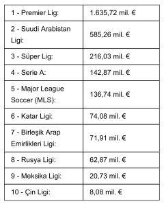 2025/2026 sezonunun iki transfer dönemi birlikte değerlendirildiğinde, Süper Lig 216 milyon euro’luk açıkla dünyada en fazla zarar yazan 3. lig oldu. Bu alanda Süper Lig’i, 585 milyon euro eksiyle Suudi Arabistan Ligi ve 1 milyar 635 milyon euro’luk rekor zararla Premier Lig geride bıraktı.