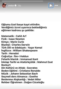“Oğlumu özel liseye kayıt ettirdim. Verdiğimiz ücret uyarınca beklediğimiz eğitmen kadrosu şu şekilde:
