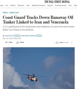 ABD, Venezuela petrolü taşıyan Bella 1 tankerini denizde durdurmak için Sahil Güvenlik ve özel birimleri devreye sokuyor. Gemi, yaptırımlara rağmen abluka altında kaçtı. Washington kanadının söz konusu operasyonu uluslararası sularda yürütülecek…